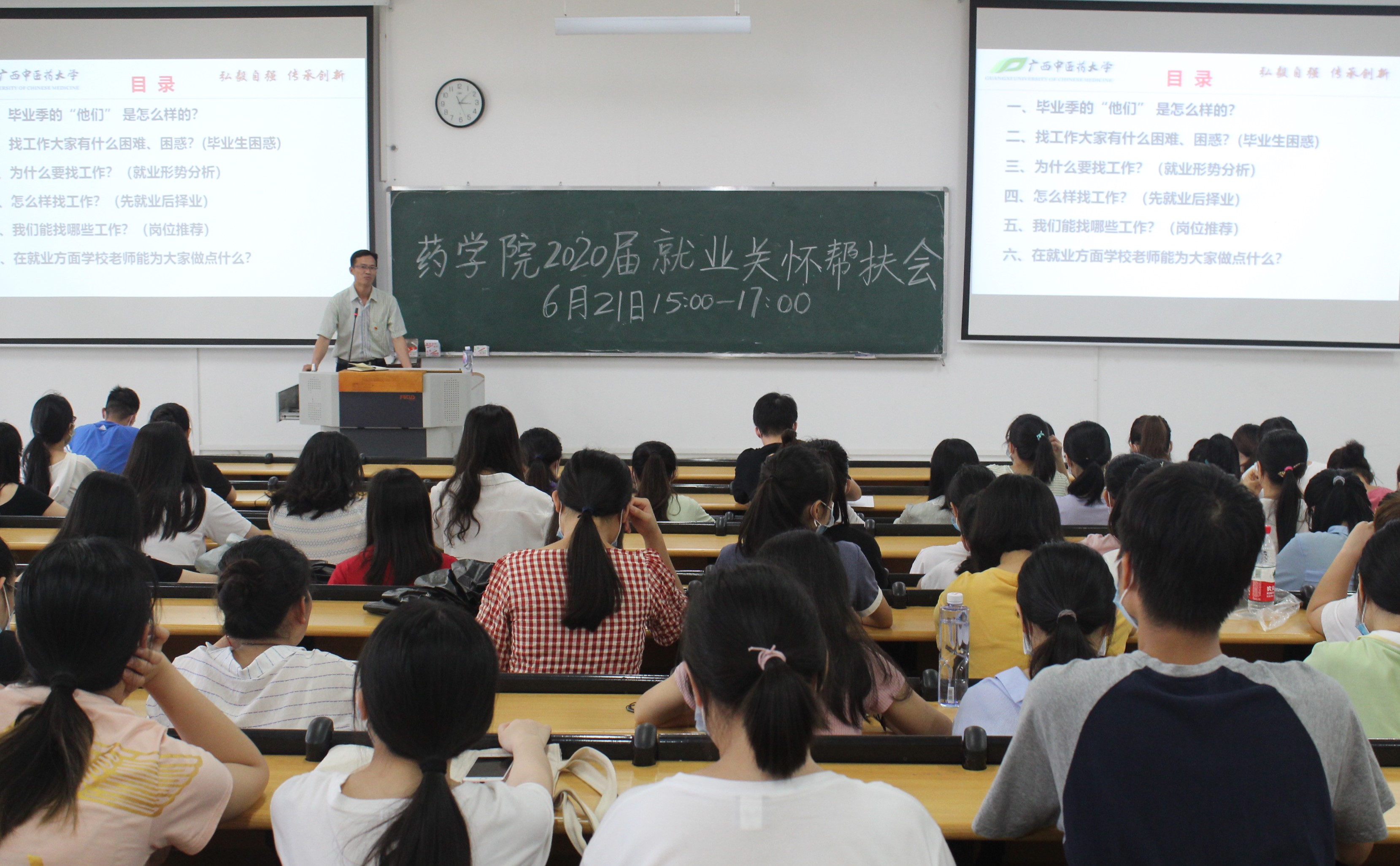 6月21日下午,药学院在仙葫校区教学楼1-107教室召开2020届毕业生就业关怀帮扶会。110名未就业毕业生参加会议,药学院学办主任凌勇威为就业困难毕业生做了深入细致的精准帮扶和培训。会议由毕业班辅导员吴玉峰主持。
