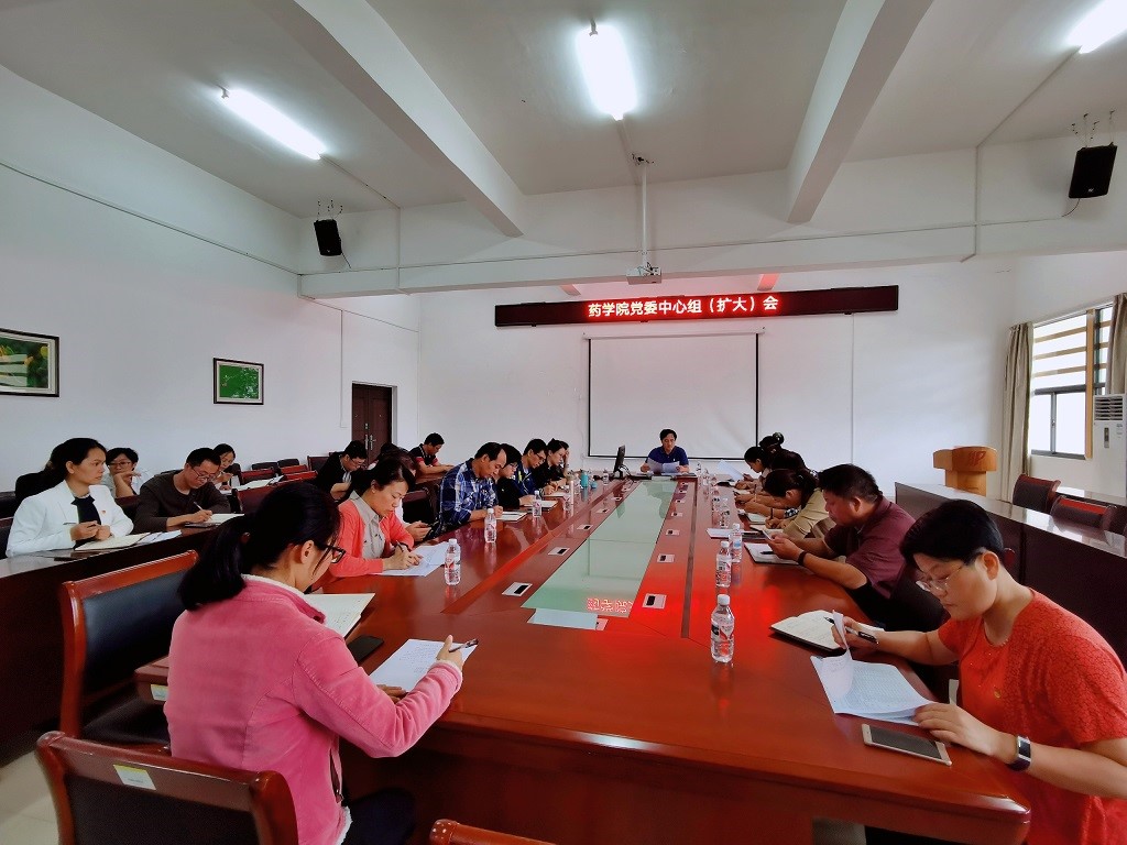 10月6日下午,药学院党委在达道楼A405会议室召开理论学习中心组学习(扩大)会议,专题学习《关于转发自治区党委第九巡视组黄远山组长和学校党委尤剑鹏书记在自治区党委第九巡视组巡视广西中医药大学党委工作动员会上讲话的通知》(校党字〔2020〕23号)文件讲话精神,药学院党委班子成员、党支部书记、支委参加会议。会议由党委书记蒋林主持。