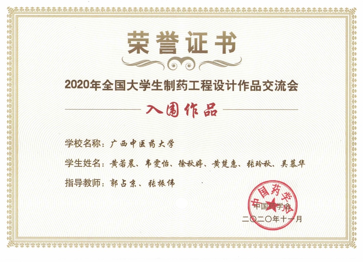 该项交流会从2020年5月15日开始启动,至11月15日结束,历时六个月。广西中医药大学药学院在教务处的领导下积极组织学生参赛,对参赛学生进行了认真培训,培训过程中不仅整合了我校的相关专业教师资源,而且邀请了华蓝设计院的专家对学生进行培训。