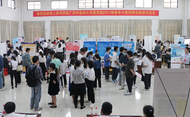 本次招聘会由广西中医药大学招生与就业处主办,药学院承办,邀请了来自区内外的近50家医药、食品等领域的知名企业单位参加,为药学院中药学、药学、临床药学、制药工程、食品类专业的毕业生提供了近1000个就业岗位。