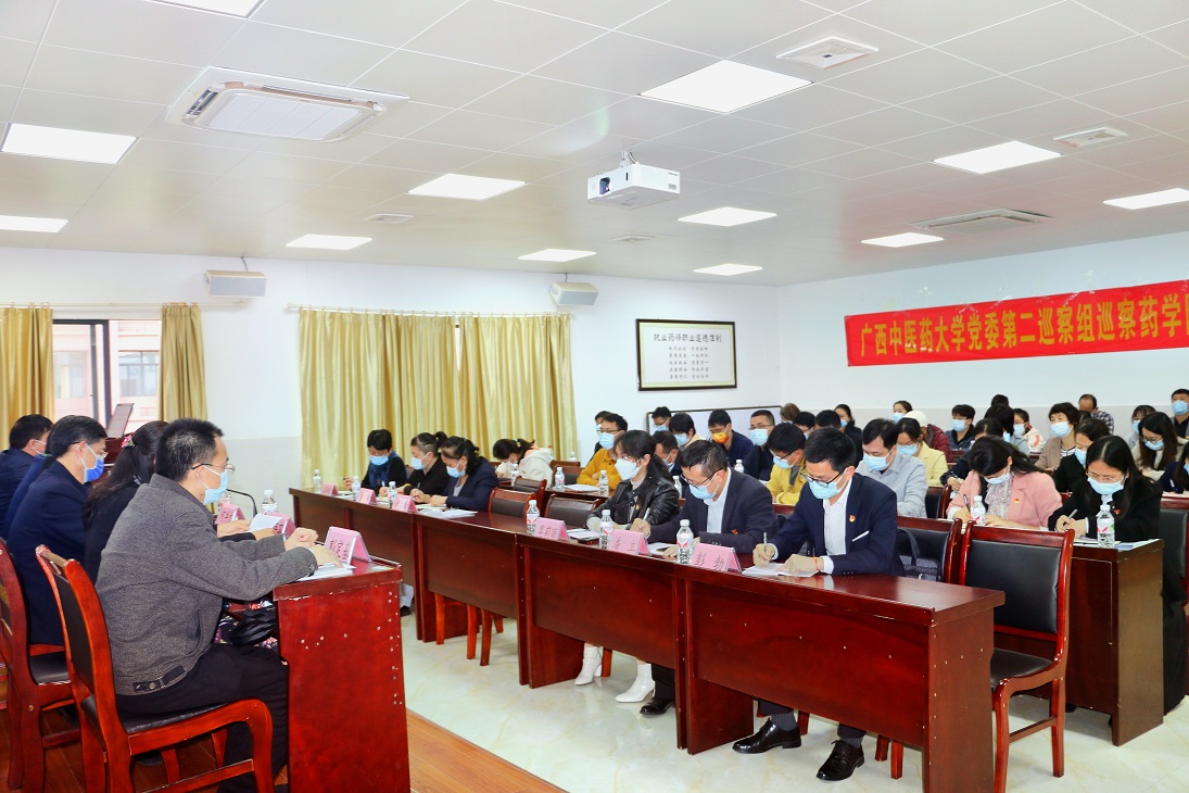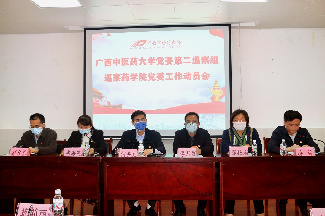 3月29日下午,学校党委第二巡察组巡察药学院党委工作动员会在仙葫校区达道楼B421示教室召开。学校党委副书记何并文、学校纪委副书记李月发、学校第二巡察组组长韦海英、副组长张艳娟、彭定基及其他组员、药学院党政领导班子、各党支部书记、纪检委员、学院各部门主要负责人、高级职称代表、民主党派代表、学生代表参加了动员会。会议由药学院党委书记蒋林同志主持。