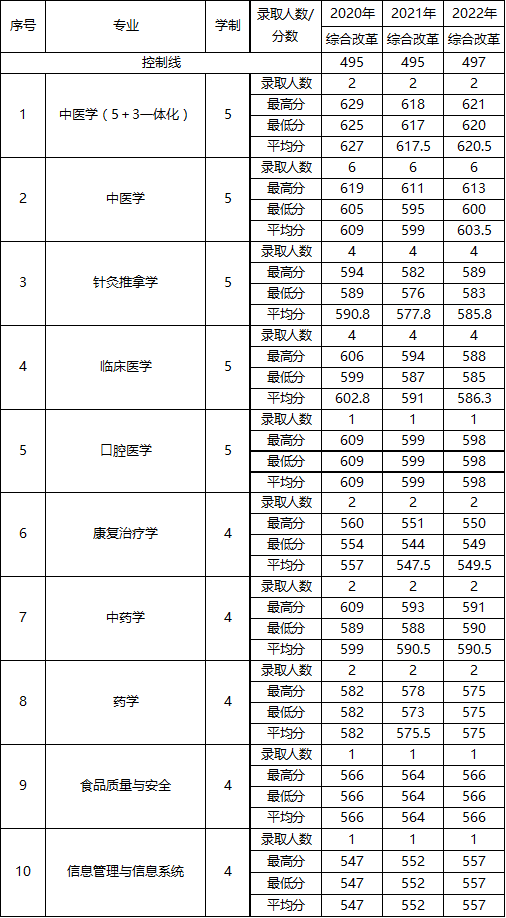 广西中医药大学2020-2022年浙江录取情况