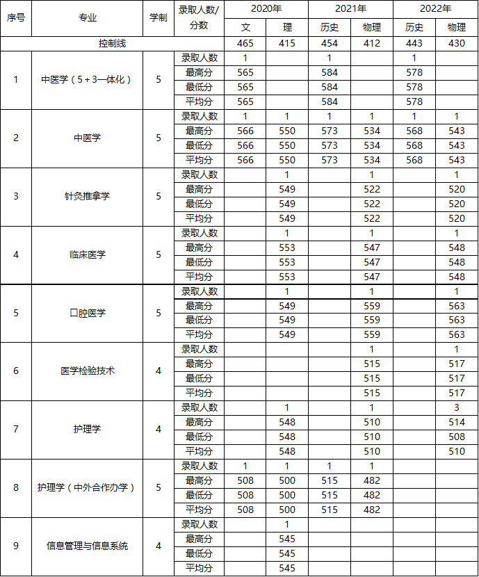 广西中医药大学2020-2022年河北录取情况