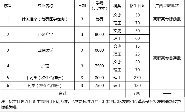 广西中医药大学2022年高职招生计划(仅面向广西招生)