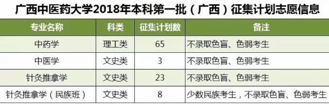2018年征集志愿-本科第一批(广西) 发布时间:2018-07-14 16:35:06 浏览次数: 次 【字体:小 大】 我校本批次将征集中药学、中医学、针灸推拿学,针灸推拿学(民族班)等专业计划共99名,详情如下: 征集志愿填报时间:7月14日18时至7月15日9时,请考生在规定时间内进入广西招生考试院官网(http://www.gxeea.cn)“2018年普通高校招生志愿填报”填报征集志愿,并保证在征集志愿填报、投档及录取期间保持报名时所留联系电话畅通。详情请点击“征集志愿”。 分享到: 【打印正文】