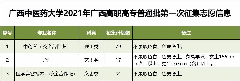 本次将征集中药学(校企合作班)、护理、医学美容技术(校企合作班)专业计划共98名,详情如下: