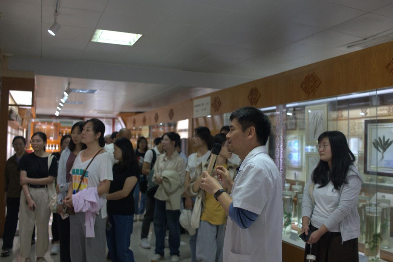 11月01日,为深入贯彻落实中共中央、国务院《关于全面深化新时代教师队伍建设改革的意见》和《深化新时代教育评价改革总体方案》精神,帮助我校新入职教职员工进一步明确立德树人根本任务,激发爱国、爱校、爱岗热情,学校对新入职教职员工进行岗前培训并到我平台参观。常务副主任苏健博士带领他们参观了本平台展厅(药资源普查数据库、标本库等)及实验室,并向他们介绍了壮瑶药研究的理论成果、科技奖项;一类新药龙血竭及实验室产品兰香草精油等。