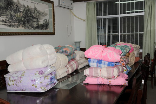 壮医药学院院长林辰教授为困难学生发放爱心棉被