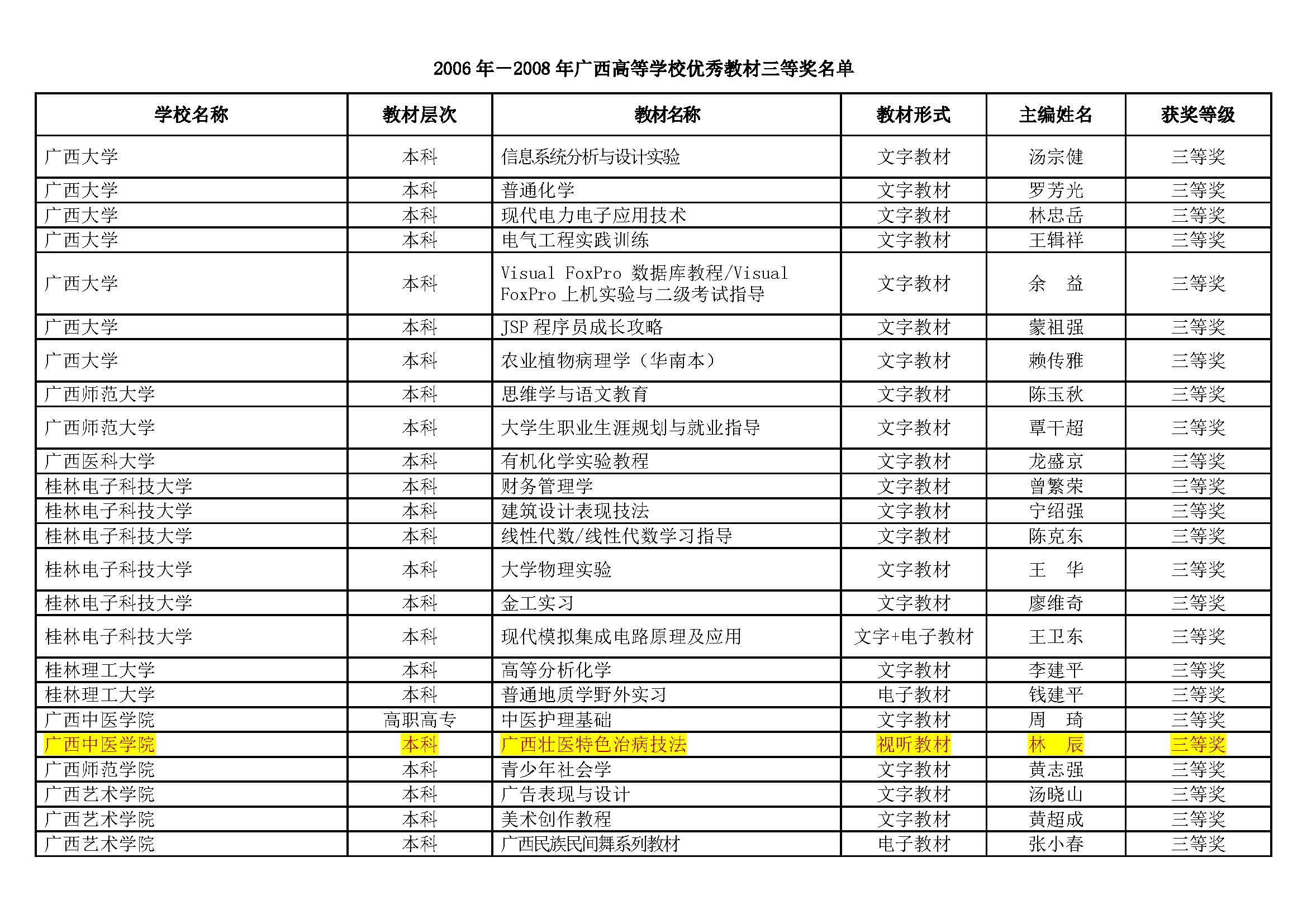 虽然壮医特色疗法教研室成立在后,但是《壮医特色疗法》、《壮医经筋学》的教材建设却从未停止过。2008年,收集整理广西民间壮医特色治病技法出版的视听教材《广西壮医特色治病技法》,获得2008年中国教育技术协会中医药专业委员会、全国中医药高等教育学会教育技术研究会第五届学术年会优秀电视教材一等奖。2008年壮医特色教材《壮医经筋疗法》获得自治区级重点教材立项,经过6年的精心酝酿,于2014年11月正式出版《中国壮医经筋学》。2012年,我校《壮医药系列教材》获全国中医药行业“十二五”规划教材立项,其中《壮医外治学》、《壮医经筋学》也作为““十二五”规划教材之一,教材编写整合、更新和优化起点低、陈旧、重复、形式单调、结构体系零乱的教学内容,突出教材综合性、设计性、创新性建设。充分挖掘壮医特色疗法、壮医经筋疗法资源优势,整合壮医药最新成果,以培养实用型特色人才为目标,修订新编壮医学教材突显壮医学简、便、廉、验的特点,现教材已编写完毕,待出版发行投入使用。
