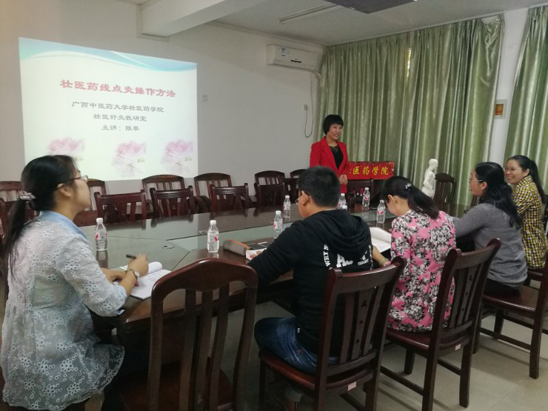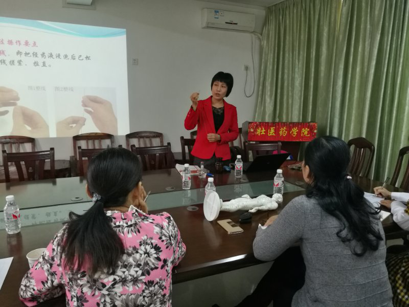 壮医药学院教研室学术交流活动 ——壮医药线点灸技法 发布时间:2017-12-12 15:30:21 浏览次数:次 【字体:小大】 为了促进教研室之间的交流学习,提高教师的专业知识水平和业务能力,我院各教研室联合举办系列壮医基本知识和技法学习系列活动。2017年11月1日在壮医药学院201会议室举办活动系列一,邀请壮医针灸教研室主任陈攀副教授主讲《壮医药线点灸技法》。 陈攀副教授为各位老师详细地讲述了壮医药线点灸疗法的操作方法,激发了大家对壮医药线点灸疗法浓厚兴趣,学习交流现场气氛活跃,大家获益匪浅。 分享到: 【打印正文】